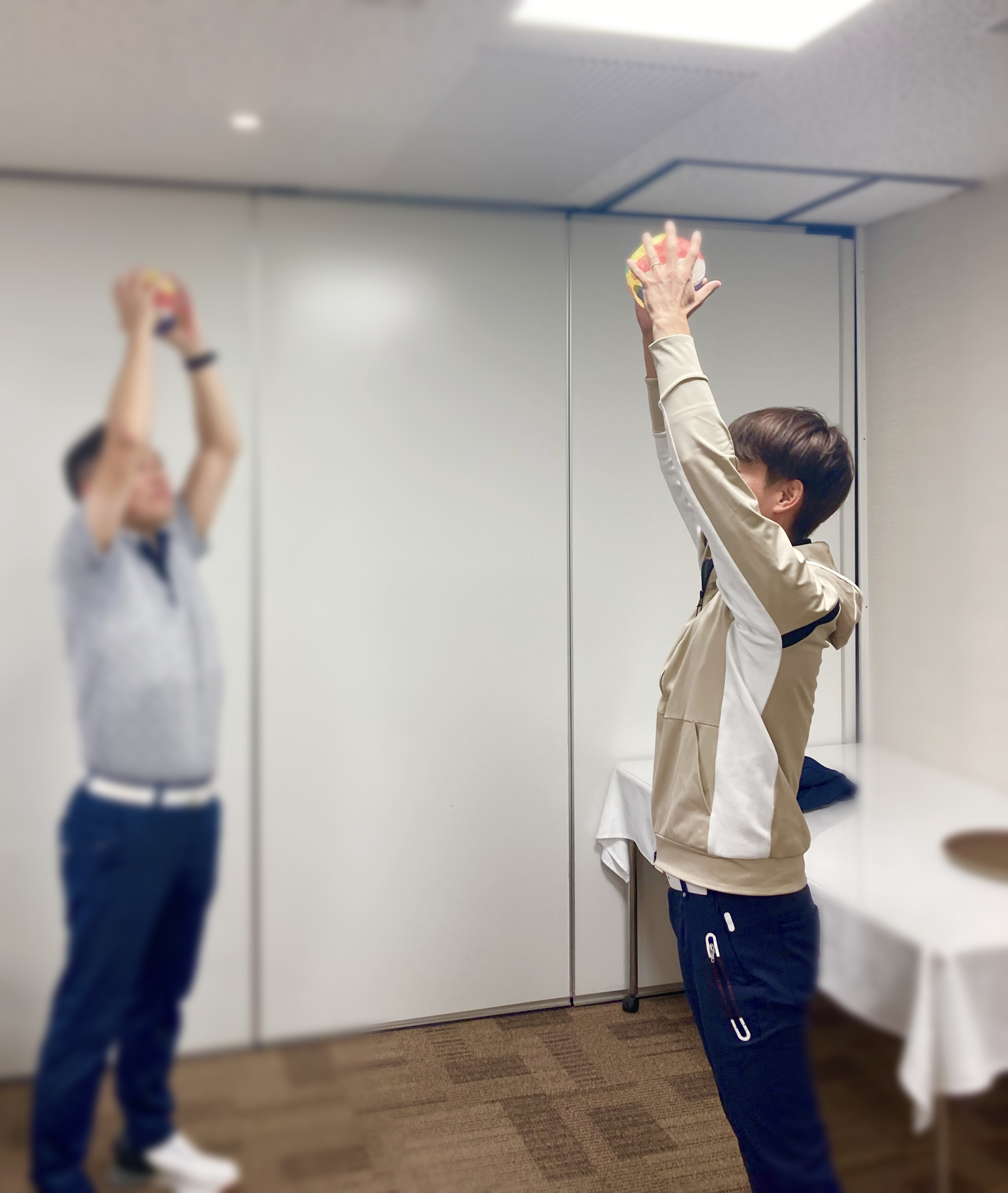 チェック後は、その場で ご自宅でできる簡単なセルフストレッチや 日常生活で気をつけたいポイントをお伝えしました。